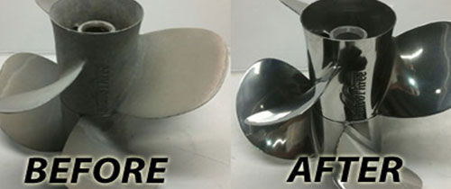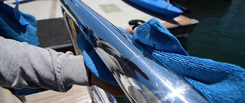 Polishing of rusted stainless-steel deck hardware and hand rails to restore to the original stainless shine. Polishing of oxidized aluminum T-tops and tuna towers and coating with sealant to prevent future oxidation.