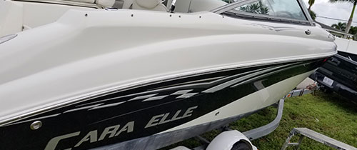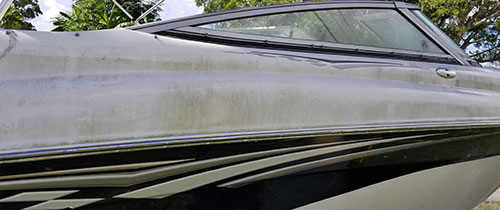 2. Remove any light oxidation on gel coat or paint. (heavy oxidation or dull surfaces will incur an extra charge, see below)